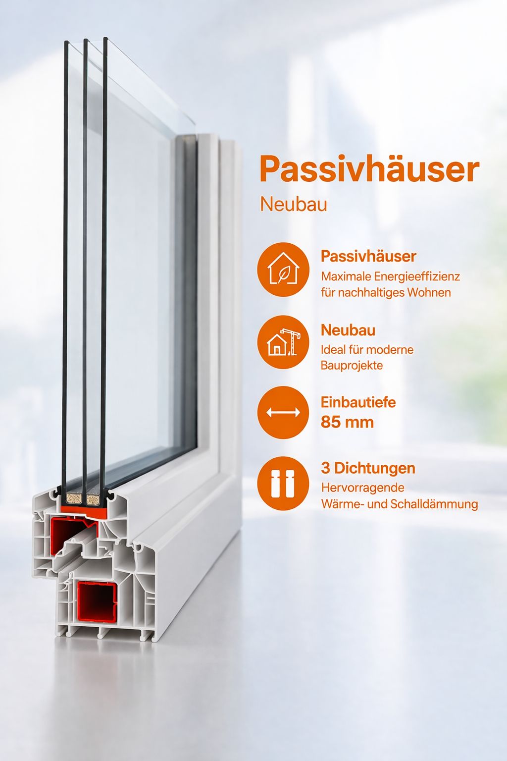 Mit dem Fenstersystem ALUPLAST IDEAL 8000 erhalten Sie ein Produkt auf höchstem Niveau, bei dem die Verarbeitungsqualität der Profile und die eingesetzten Materialien kein Gegenstand von Kompromissen sind. Die Fenster ALUPLAST IDEAL 8000 weisen eine klassische Konstruktion mit einer Zentraldichtung auf, was wiederum überdurchschnittliche Eigenschaften im Bereich der Dichtheit der Konstruktion sowie der Wärme- und Schalldämmung garantiert. Das in der IDEAL 8000 Serie eingesetzte System mit drei Dichtungen steigert nicht nur die Dichtheit der gesamten Konstruktion, sondern verbessert auch deutlich die Lebensdauer der Beschläge, die in der sog. trockenen Kammer von externen Bedingungen isoliert sind. Dies garantiert bessere Funktionsweise der Bestandteile von Beschlägen und störungsfreie Fensternutzung. Mit dem markanten und in der Form perfekten Design wie auch mit einigen Profilstilisierungslinien können originelle architektonische Lösungen erreicht werden.